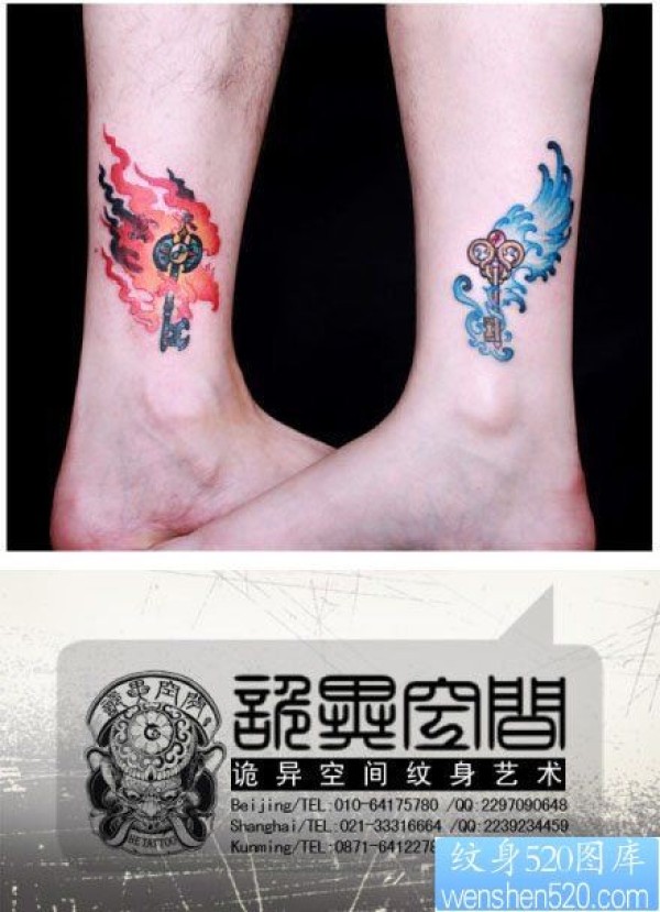 腿部漂亮时尚的情侣钥匙纹身图片_情侣纹身图案大全_纹身图吧