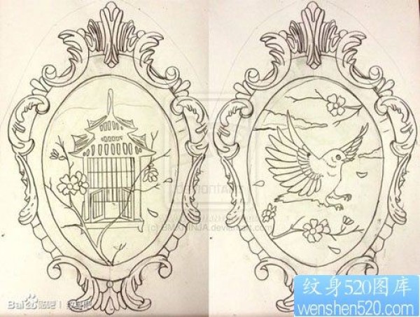 一幅唯美时尚的小鸟与鸟笼情侣纹身图片_情侣纹身图案大全_纹身图吧