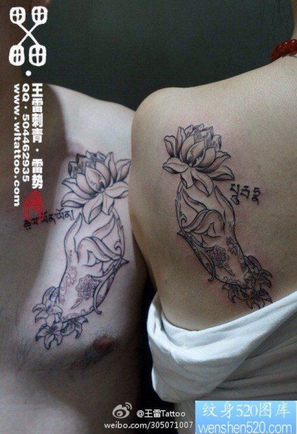 时尚经典的一幅情侣佛手纹身图片_情侣纹身图案大全_纹身图吧