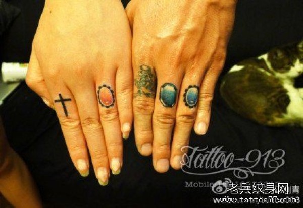 手指时尚精美的情侣宝石纹身图片_情侣纹身图案大全_纹身图吧