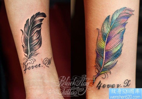 纹身520图库分享一幅情侣羽毛纹身图片_情侣纹身图案大全_纹身图吧