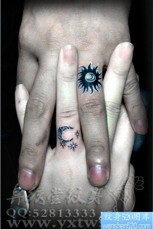 手指潮流流行的情侣太阳与月亮纹身图片_情侣纹身图案大全_纹身图吧