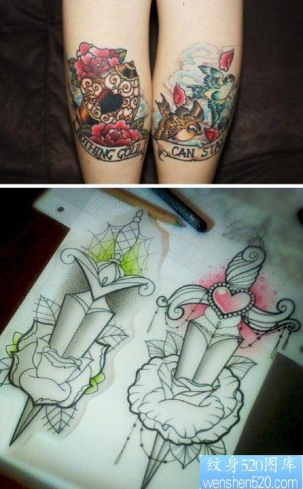 一组经典的情侣小鸟与鸟笼匕首纹身图片_情侣纹身图案大全_纹身图吧