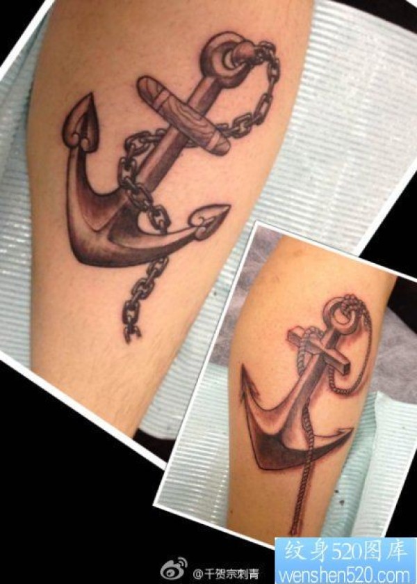 腿部情侣船锚纹身_情侣纹身图案大全_纹身图吧