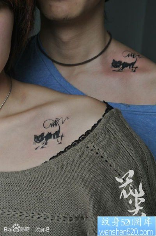 锁骨处潮流流行的情侣猫咪纹身图片_情侣纹身图案大全_纹身图吧
