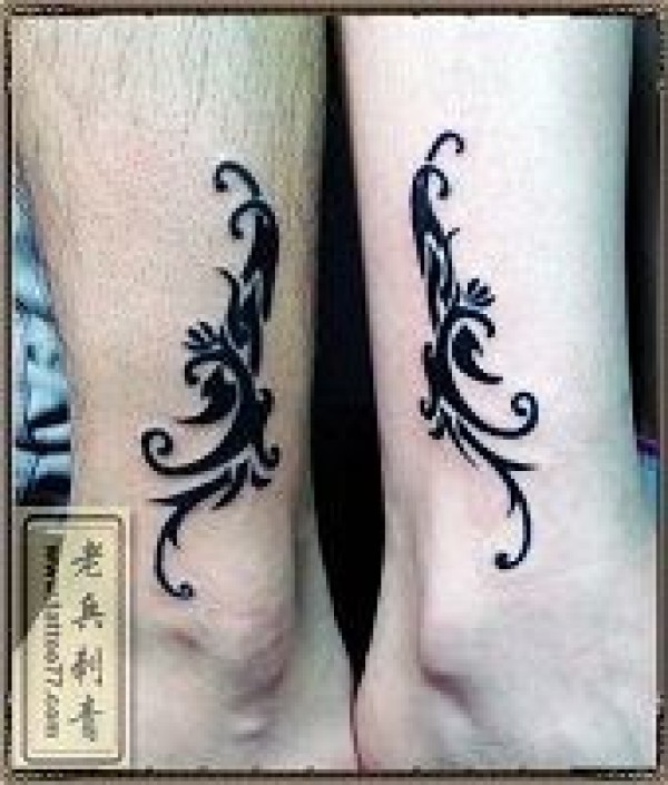 腿部精美潮流的情侣图腾纹身图片_情侣纹身图案大全_纹身图吧