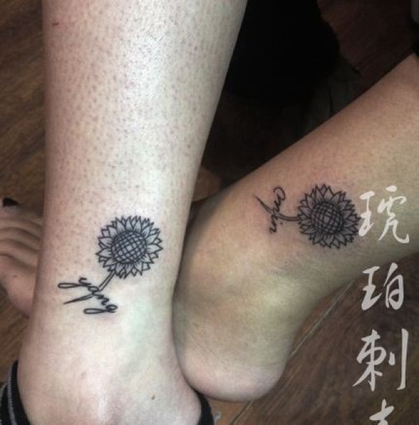 腿部情侣向日葵纹身图片_情侣纹身图案大全_纹身图吧