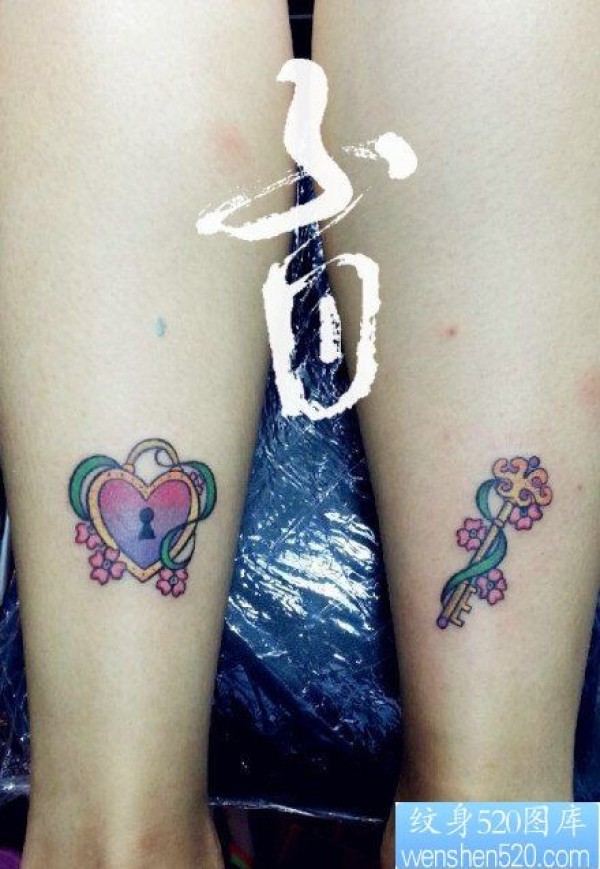 腿部情侣钥匙爱心锁纹身_情侣纹身图案大全_纹身图吧