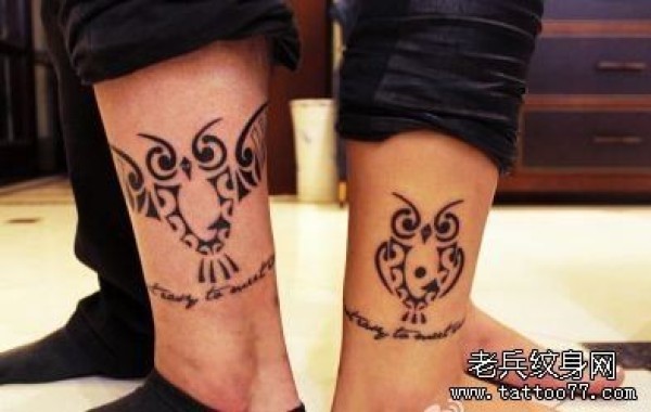 腿部情侣图腾猫头鹰纹身图片_情侣纹身图案大全_纹身图吧