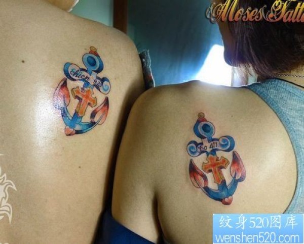 肩背一幅精美的情侣船锚纹身图片_情侣纹身图案大全_纹身图吧