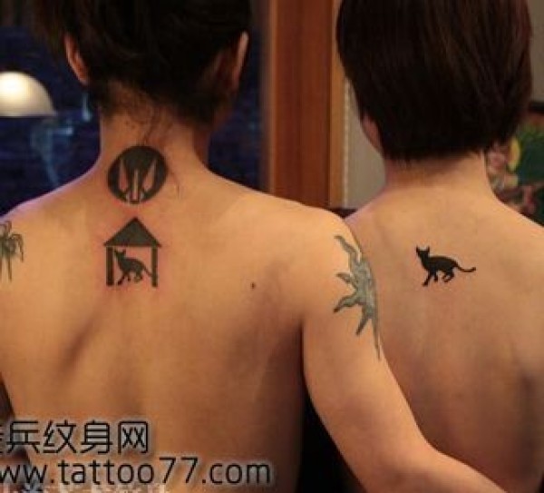 背部情侣图腾猫纹身图片_情侣纹身图案大全_纹身图吧