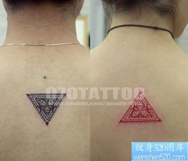 背部好看的图腾三角形纹身图片_情侣纹身图案大全_纹身图吧