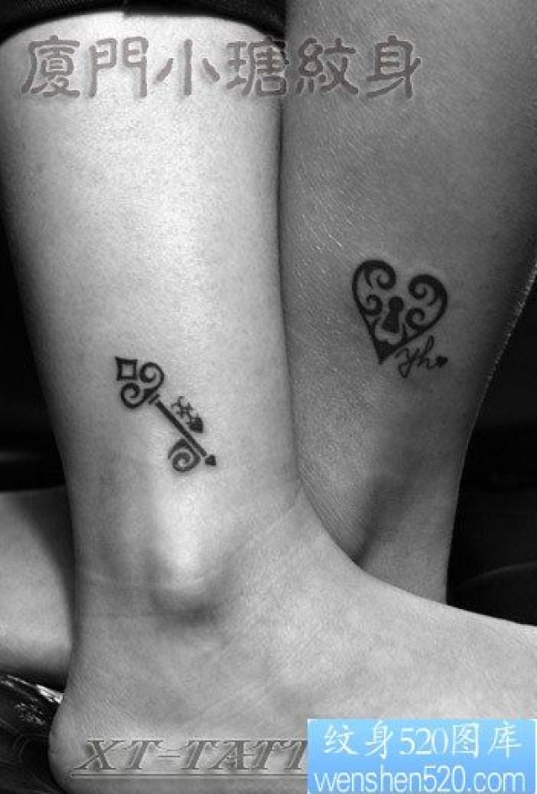 腿部情侣钥匙爱心锁纹身_情侣纹身图案大全_纹身图吧