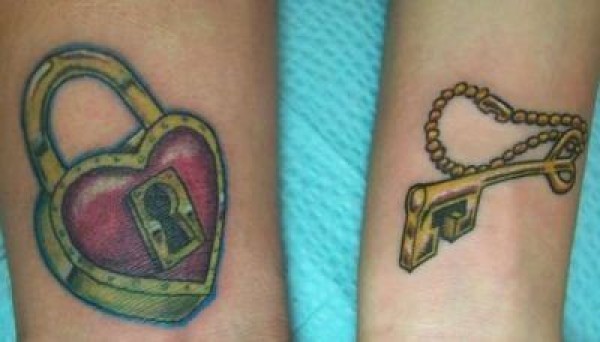 手臂情侣钥匙锁纹身图片_情侣纹身图案大全_纹身图吧
