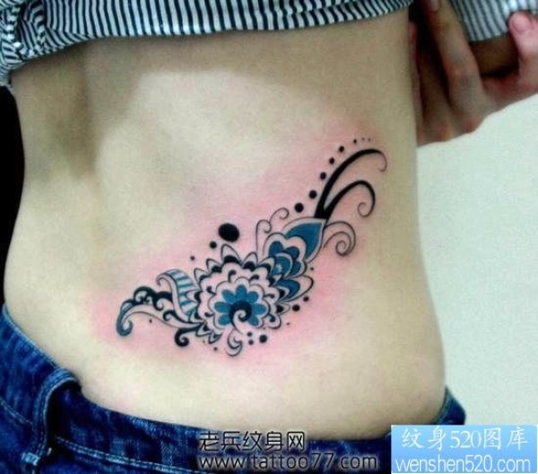 流行的腰部图腾藤蔓纹身图片_情侣纹身图案大全_纹身图吧
