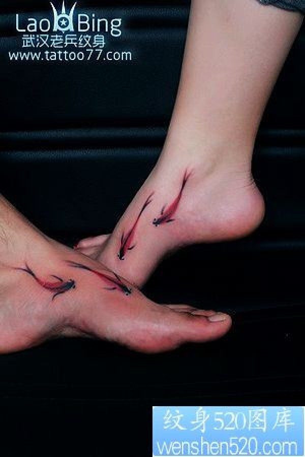 情侣纹身脚部小锦鲤纹身图片_情侣纹身图案大全_纹身图吧