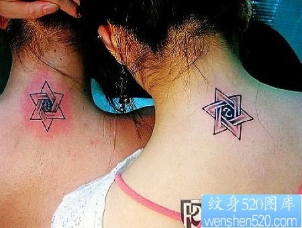 颈部六芒星情侣纹身图片_情侣纹身图案大全_纹身图吧