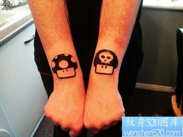 可爱情侣图腾蘑菇纹身图片_情侣纹身图案大全_纹身图吧