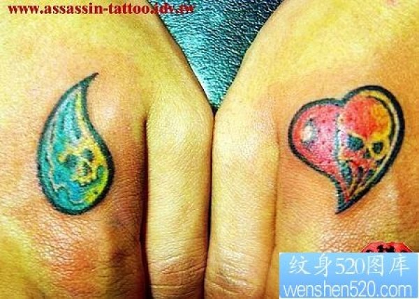 手部彩色情侣骷髅爱心纹身_情侣纹身图案大全_纹身图吧