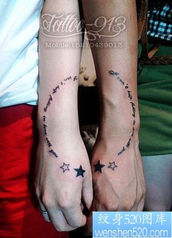 手部情侣英文文字五角星纹身图片_情侣纹身图案大全_纹身图吧