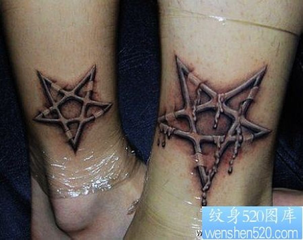 腿部撕皮情侣五芒星纹身图片_情侣纹身图案大全_纹身图吧