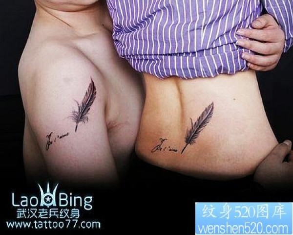 情侣肩背时尚羽毛纹身_情侣纹身图案大全_纹身图吧