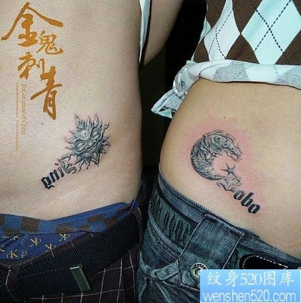 腹部情侣石雕太阳月亮纹身_情侣纹身图案大全_纹身图吧