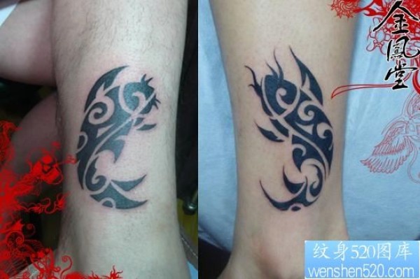 脚踝情侣纹身图片情侣脚踝图腾鱼纹身图片作_情侣纹身图案大全_纹身图吧