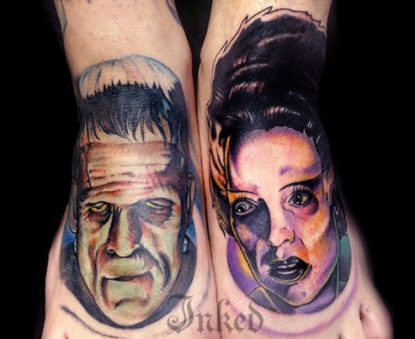脚背上的一对中年夫妻纹身图案_情侣纹身图案大全_纹身图吧