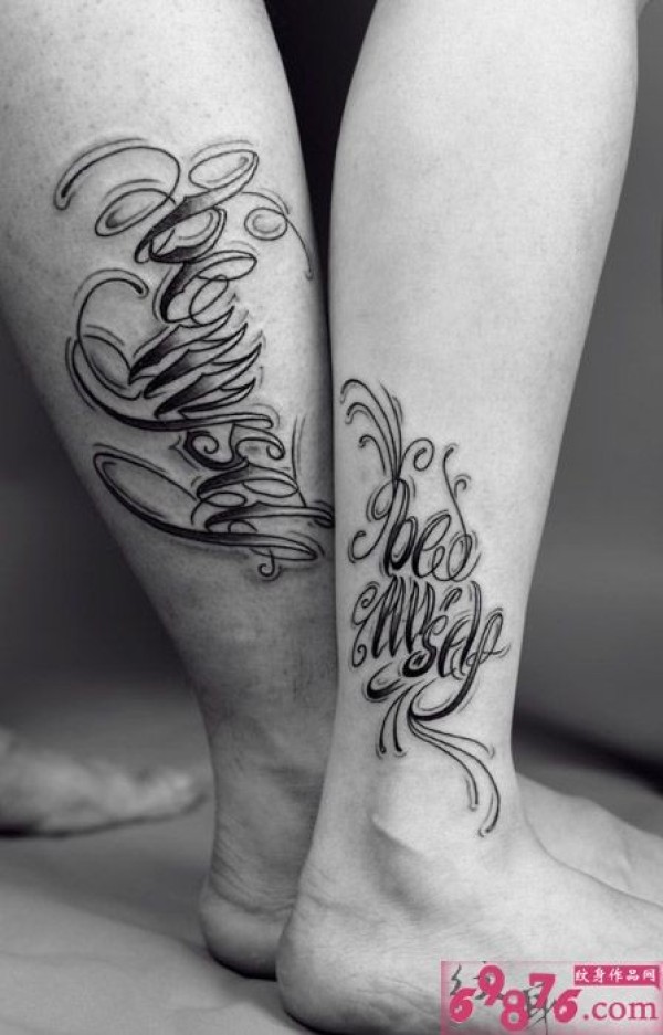 浪漫情侣小腿花体英文刺青_情侣纹身图案大全_纹身图吧