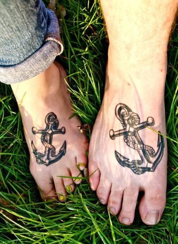 腿部情侣船锚纹身_情侣纹身图案大全_纹身图吧
