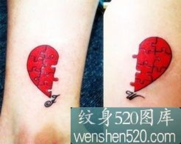 红色的适合情侣的脚上半心纹身_情侣纹身图案大全_纹身图吧
