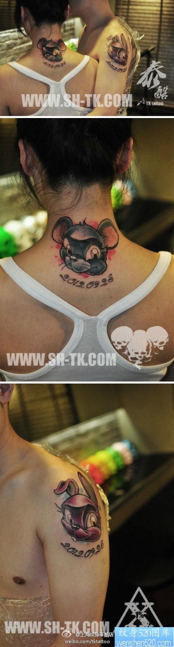后颈可爱的情侣小兔子与老鼠纹身图片_情侣纹身图案大全_纹身图吧
