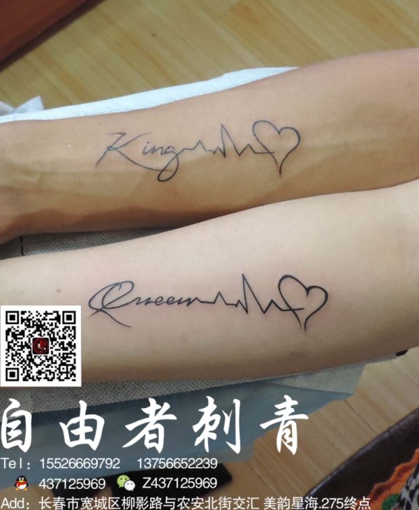 单线纹身,情侣手臂上的心电图纹身图案爱情正_情侣纹身图案大全_纹身图吧
