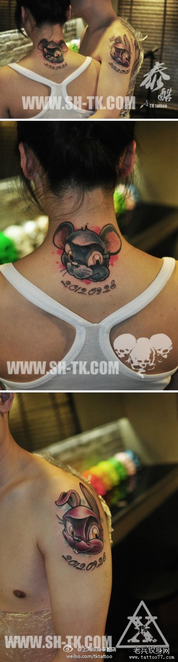 后颈可爱的情侣小兔子与老鼠纹身图案_情侣纹身图案大全_纹身图吧