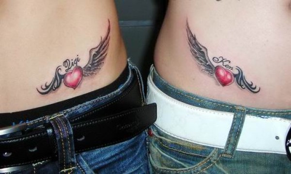 腰部爱心翅膀情侣纹身图案_情侣纹身图案大全_纹身图吧