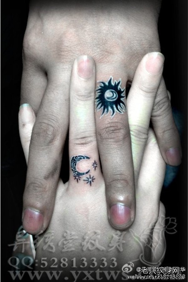 手指时尚流行的情侣太阳与月亮纹身图案_情侣纹身图案大全_纹身图吧