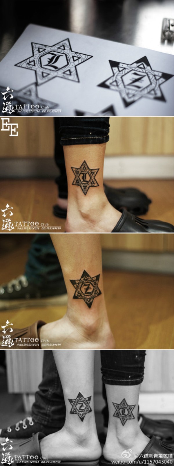 腿部潮流经典的情侣六芒星纹身图案_情侣纹身图案大全_纹身图吧