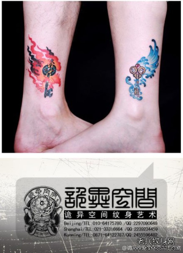 腿部情侣钥匙爱心锁纹身_情侣纹身图案大全_纹身图吧