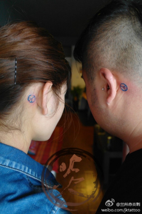 耳部小巧潮流的情侣反战符号纹身图案_情侣纹身图案大全_纹身图吧