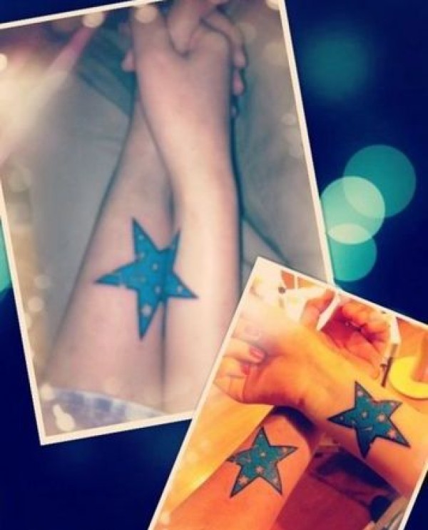 手臂一款情侣彩色五角星纹身图案_情侣纹身图案大全_纹身图吧