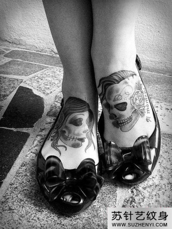 脚背创意骷髅情侣纹身_情侣纹身图案大全_纹身图吧