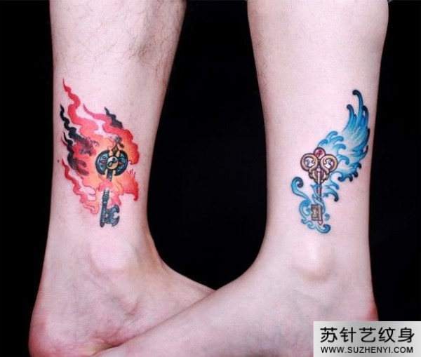 脚踝水火钥匙个性情侣纹身_情侣纹身图案大全_纹身图吧