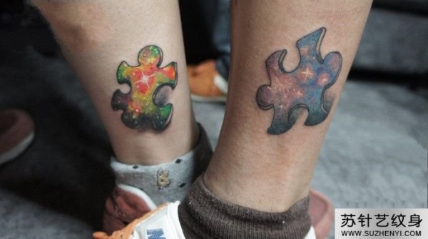 个性情侣脚踝创意拼图纹身_情侣纹身图案大全_纹身图吧
