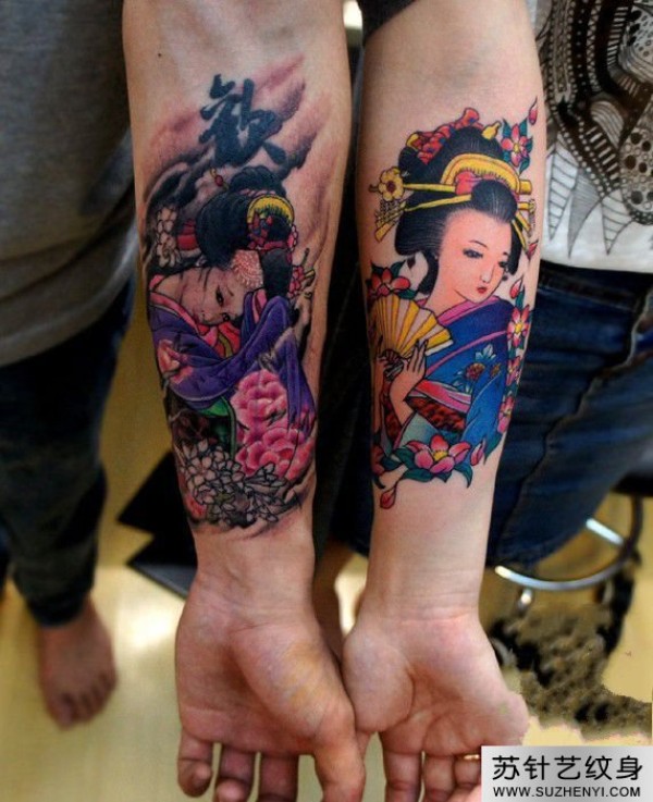 情侣日本艺妓美女手臂内侧纹身_情侣纹身图案大全_纹身图吧