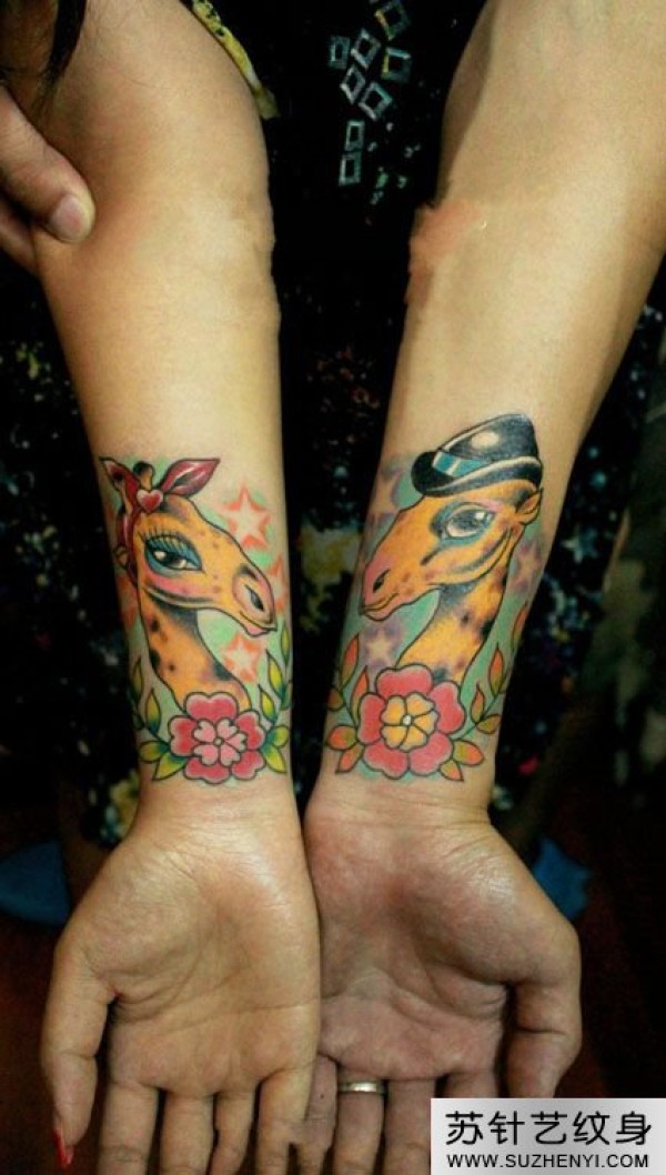 可爱情侣彩色鹿手臂纹身图案_情侣纹身图案大全_纹身图吧