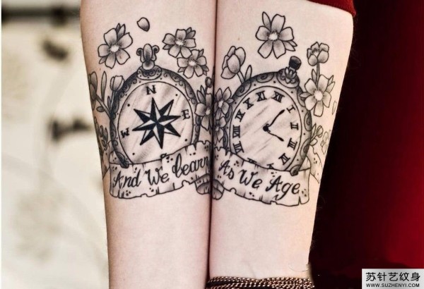 情侣唯美指南针与怀表纹身_情侣纹身图案大全_纹身图吧