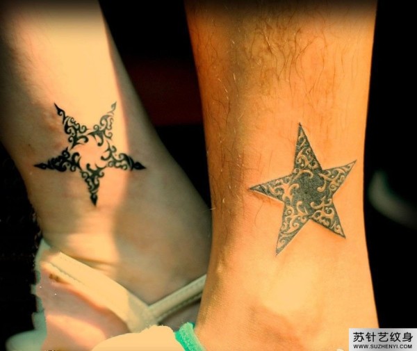 纹身情侣个性脚踝海星纹身_情侣纹身图案大全_纹身图吧