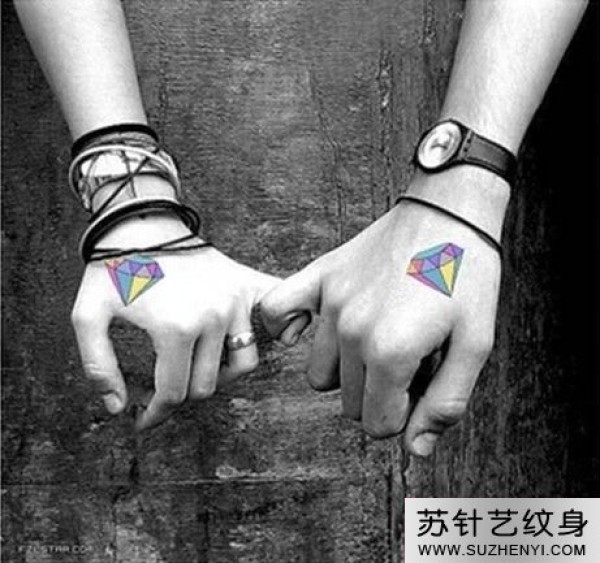 90后情侣手背创意彩钻纹身_情侣纹身图案大全_纹身图吧