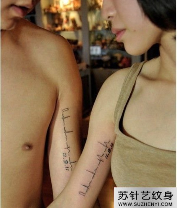 情侣手臂爱情心电图纹身图_情侣纹身图案大全_纹身图吧